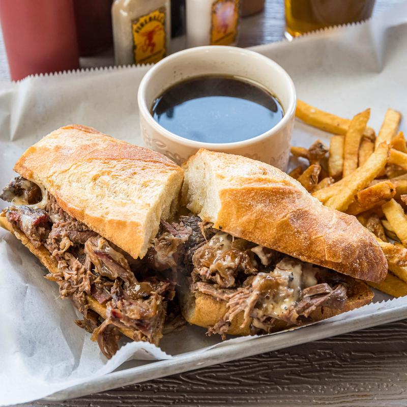 Borealis bread, Swiss cheese, caramelized onions, and housemade au jus.
